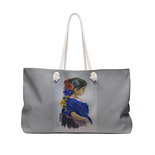 Watercolor Painting Girl with Red Bow Weekender Bag - Fun Unique Travel Tote, Weekend Duffle, Carryall, Overnight Bag, Getaway Luggage